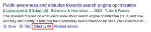Google Scholar is a free search tool designed to help you find academic sources like journal articles, books, theses, dissertations, and more. It looks a lot like regular Google but is focused on scholarly content across a wide range of subjects. This makes it a good place to start exploring a research topic and discovering work by experts in the field. One helpful feature is the ability to see how often a source has been cited and find related research. A high citation count can suggest that a source is influential.