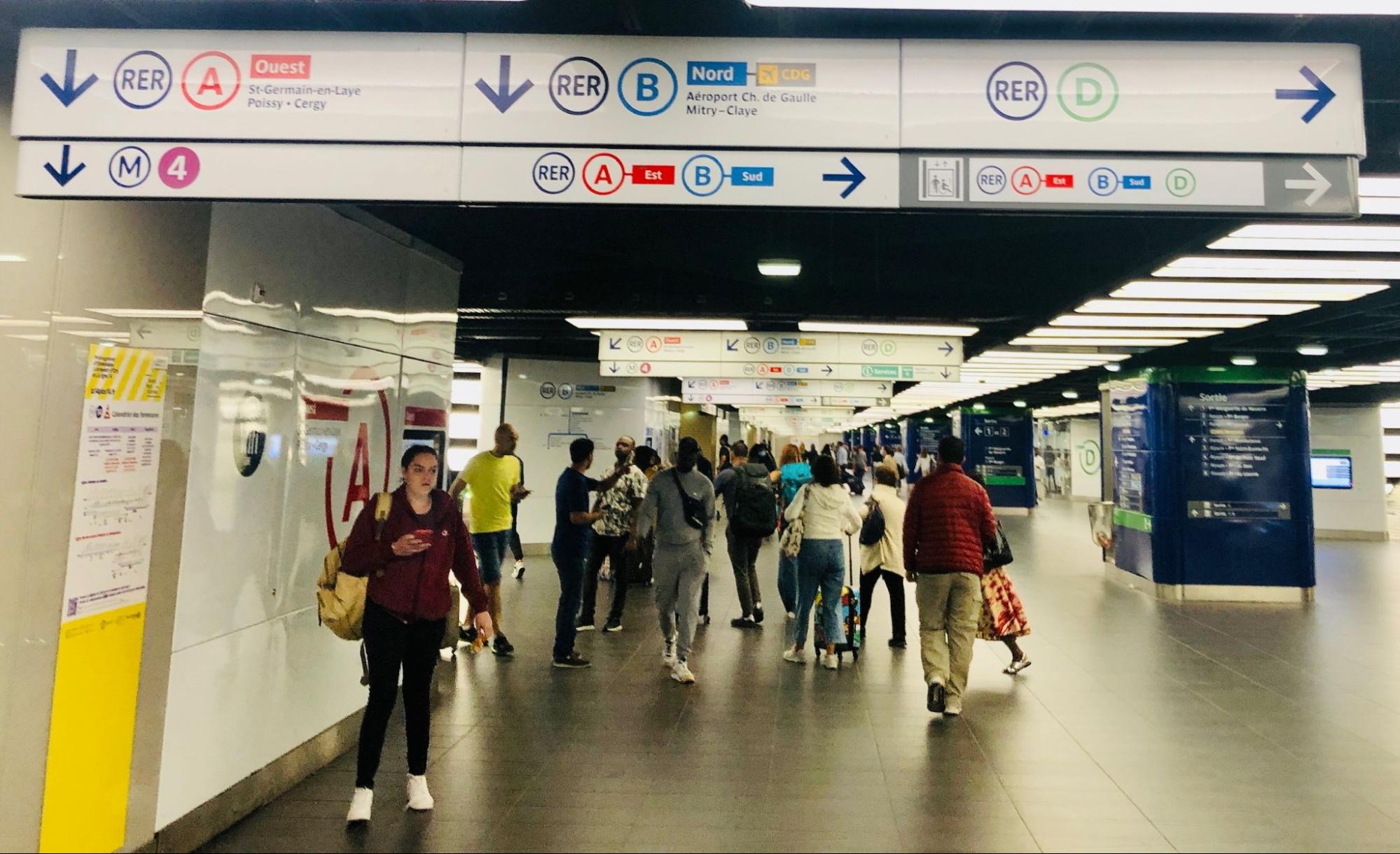 jusqu’au métro. Du Terminal 2, on va à la gare et on prend la ligne du RER. Le RER (Réseau Express Régional) sert la banlieue de Paris. Les lignes du RER sont indiquées par des lettres (RER A, RER B, etc.) Par contre, le métro est pour se déplacer en ville. Les lignes du métro sont indiquées par des numéros (ligne 1, 2, etc.)